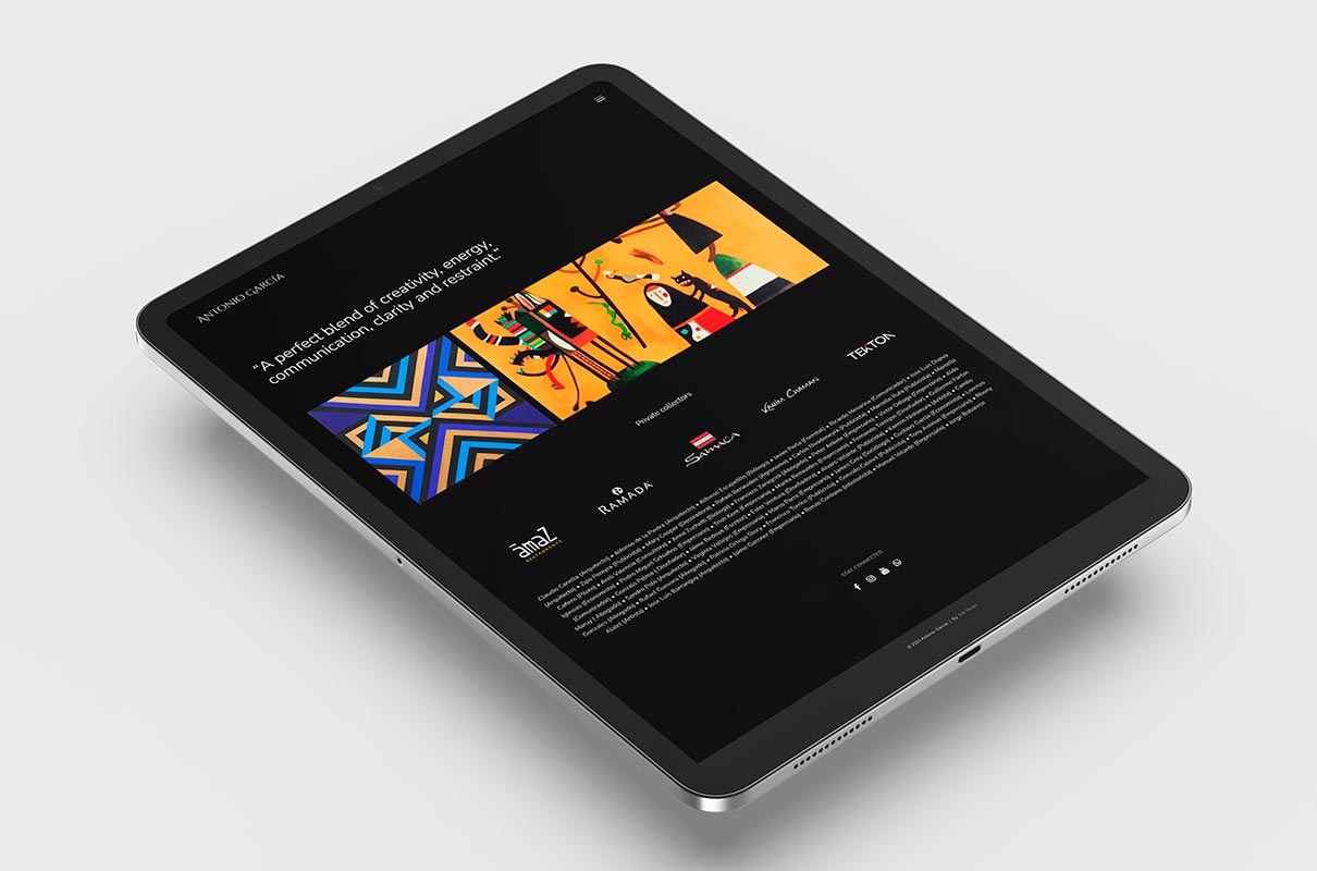 Nuestro esfuerzo por fortalecer la presencia online de Antonio García se extendió al desarrollo del diseño de su sitio web antoniogarciastudio.com, que evoca la elegancia del logotipo. La implementación de esquinas rectas en las imágenes les confirió un aspecto contemporáneo y confiable, aportando un toque de sofisticación, realzando la estética visual general del sitio web.